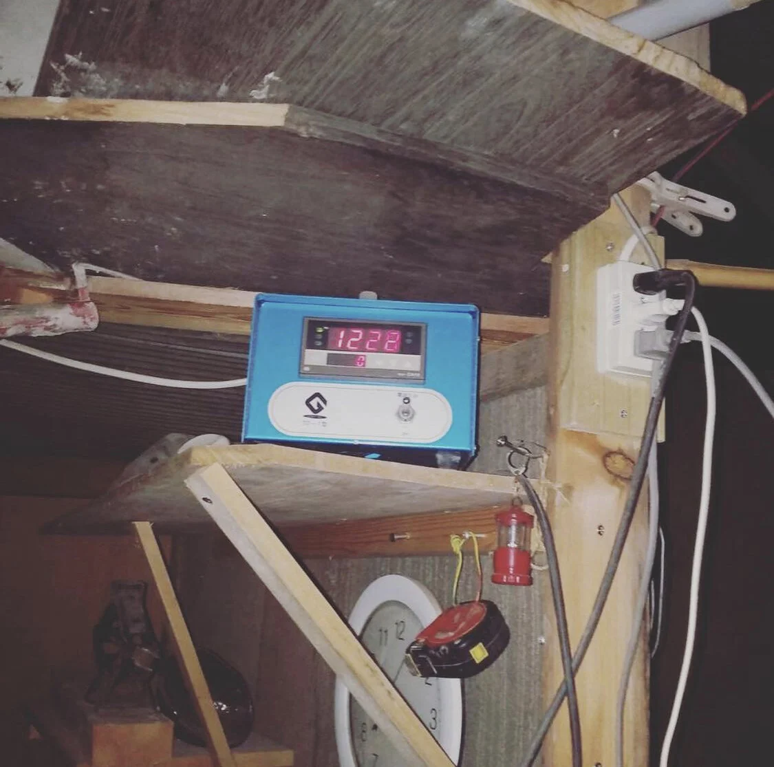 He keeps an eye on the temperature gauge to make sure that the temperature does not drop from where it needs to be at.