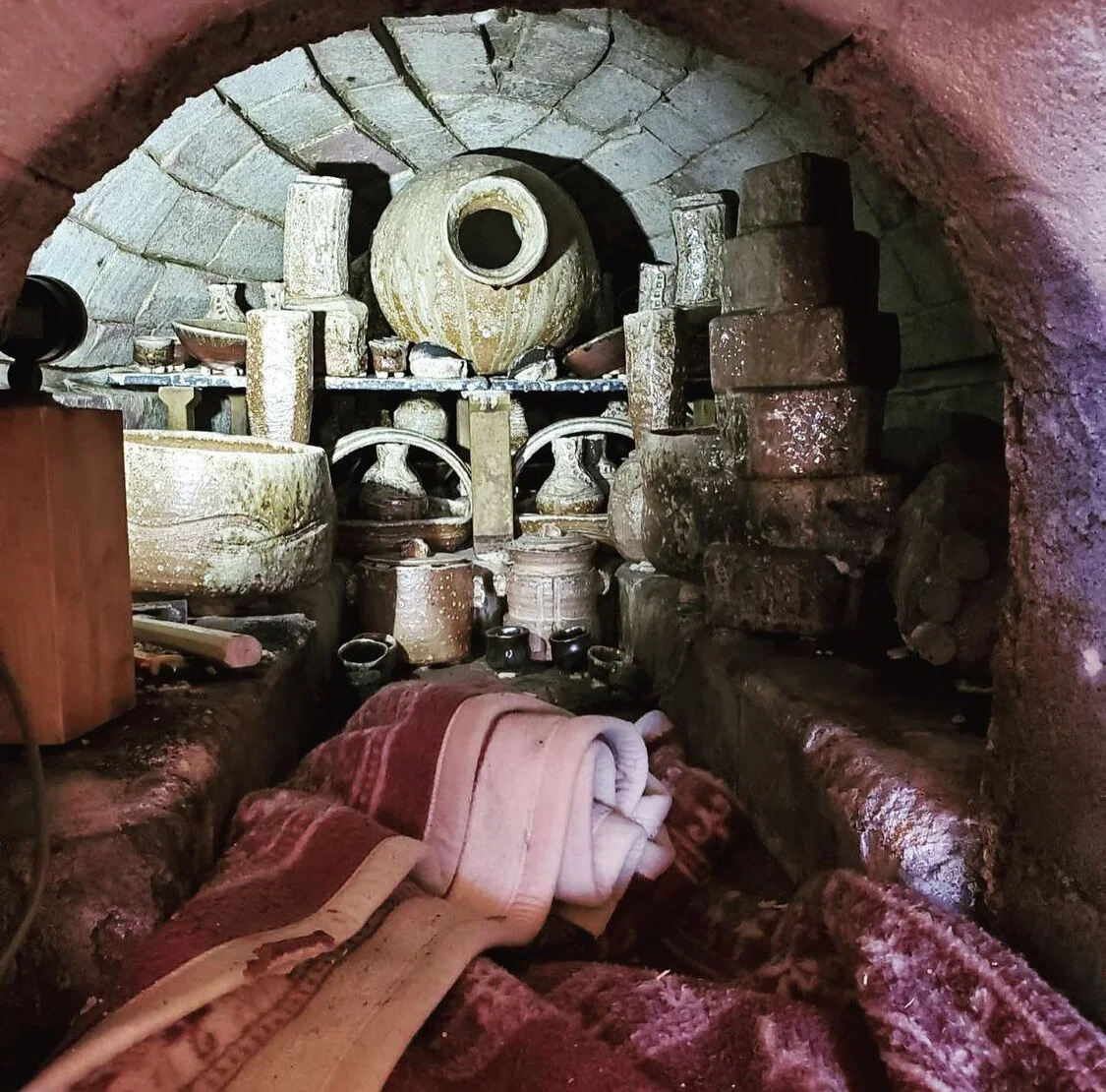 As the process goes about a week around the clock, he has two of his disciples support him and the three of them take each turn every 8 hour and make sure that the temperature inside the kiln is where it needs to be at every stage of the process.